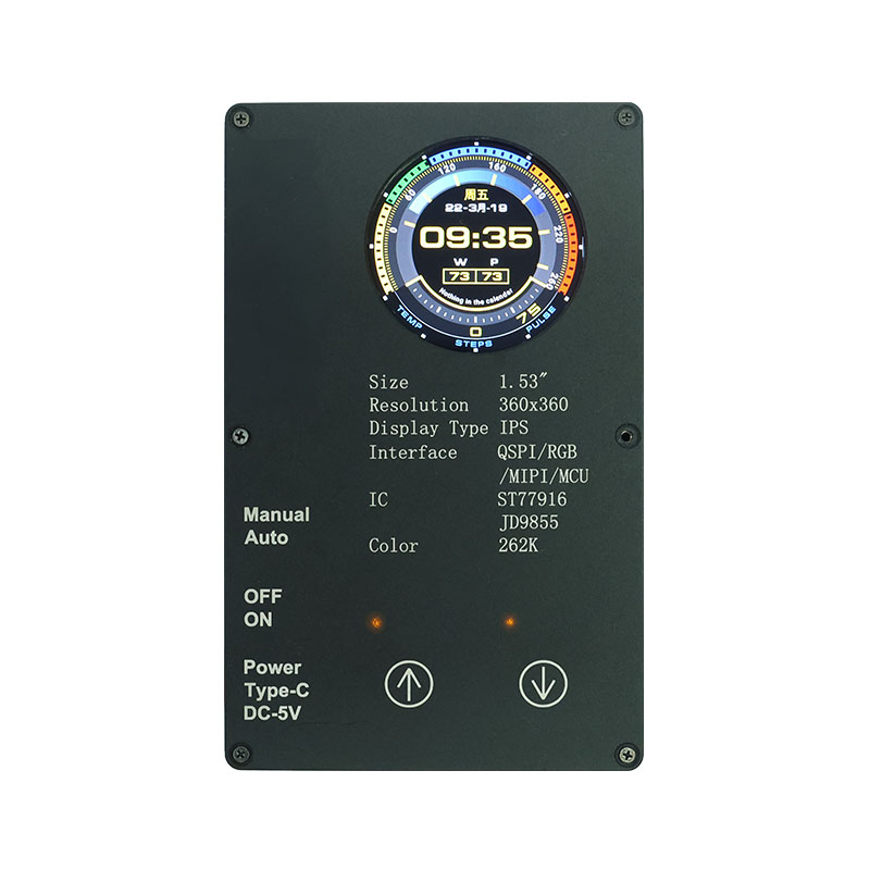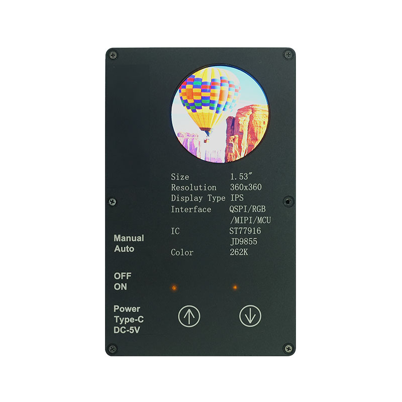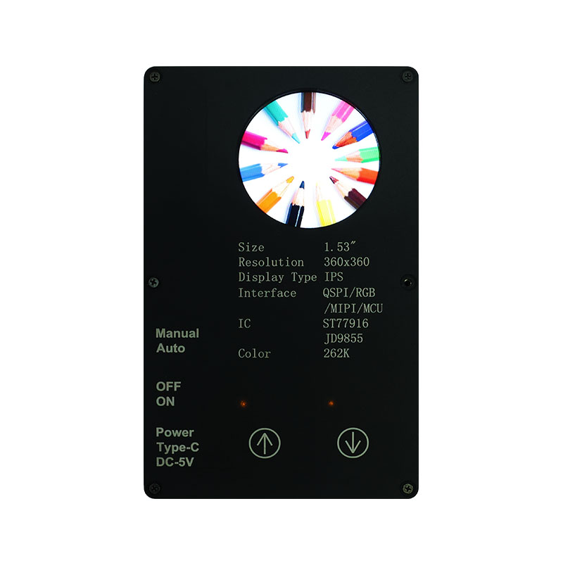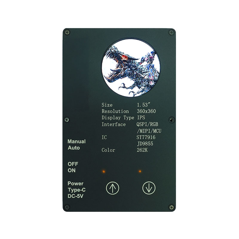 จอแสดงผลแบบกำหนดเองนี้มีความละเอียดสูง 360×360 มุมมองทั้งหมด และความสว่างสูง 400 cd/m² ด้วยช่วงอุณหภูมิการทำงานระดับอุตสาหกรรม (-20°C~70°C) จึงรับประกันประสิทธิภาพที่ชัดเจนและเสถียรในการใช้งานในบ้านอัจฉริยะ เช่น อุปกรณ์กำจัดไรและเครื่องคั้นน้ำ อินเทอร์เฟซ QSPI และ IC ไดรฟ์ ST77916 ช่วยให้สามารถถ่ายโอนข้อมูลความเร็วสูงได้ ในขณะที่ขนาดโมดูลขนาดกะทัดรัด (40.46×41.96×2.16 มม.) ช่วยเพิ่มประสิทธิภาพพื้นที่สูงสุด