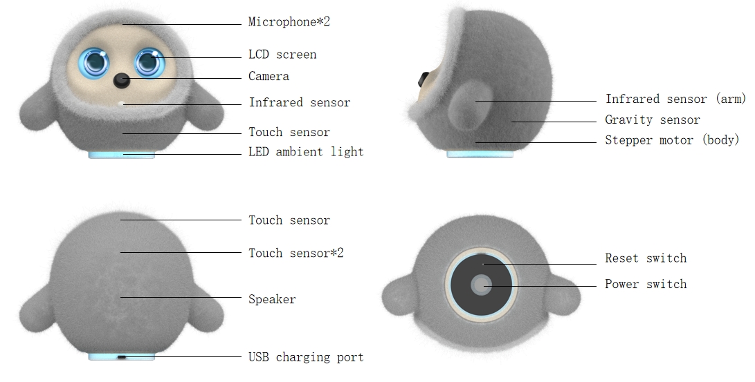 | หน้าจอแสดงอารมณ์แบบ LCD | ความจุ 3000mAh/7.2v รองรับการชาร์จเร็ว แบตเตอรี่ใช้งานได้ 2 ชั่วโมง และใช้งานได้ 2 วัน สแตนด์บายที่ครอบคลุม พร้อมกับชิปตรวจจับพลังงาน |