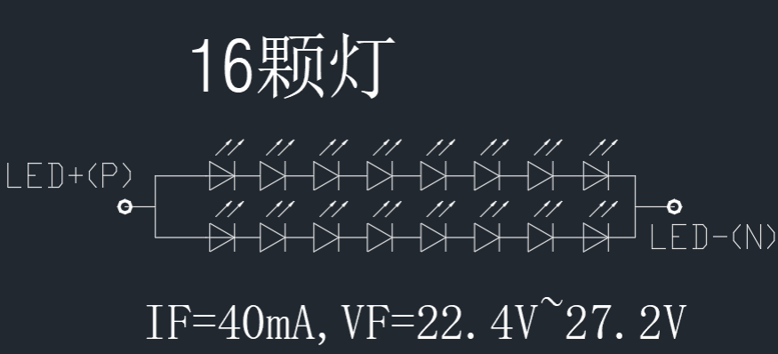 แรงดันไฟฟ้าซีรีส์: แรงดันไฟฟ้าทั้งหมดต่อสตริง LED = LED Vf เดี่ยว * หมายเลขในซีรีส์ ตัวอย่าง: ไฟ LED 8 ดวงในซีรีย์ต้องใช้แรงดันไฟฟ้าของไดรฟ์ ≥ 3.2V * 8 = 25.6V (พิจารณาระยะขอบ)