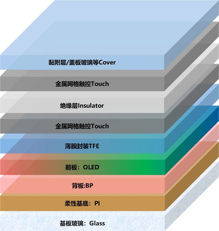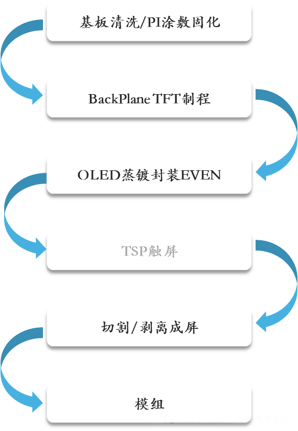 กระบวนการผลิต AMOLED ที่ยืดหยุ่นครอบคลุมขั้นตอนสำคัญต่างๆ เช่น การทำความสะอาดพื้นผิว/การเคลือบ PI, การเตรียม TFT ของแบ็คเพลน, การระเหยและการห่อหุ้ม OLED, การรวมโมดูลสัมผัส, การยกออกด้วยเลเซอร์ และการประกอบโมดูล