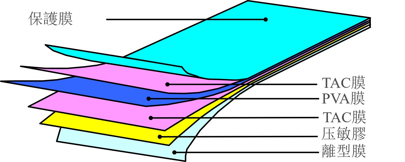 โพลาไรเซอร์:โครงสร้างประกอบด้วยฟิล์มป้องกัน ฟิล์ม TAC ฟิล์ม PVA กาวไวต่อแรงกด และฟิล์มลอกออก ความทนทานของโพลาไรเซอร์ส่งผลโดยตรงต่อความน่าเชื่อถือของ LCD อุตสาหกรรมมีตัวเลือกการจัดอันดับความทนทานหลายแบบ: